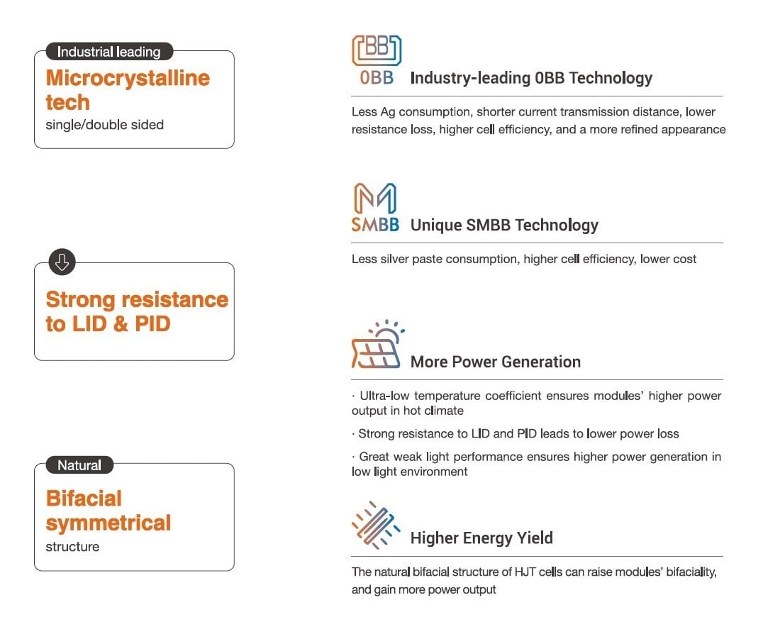 Design, manufacturing and sales of photovoltaic heterojunction cells and modules |