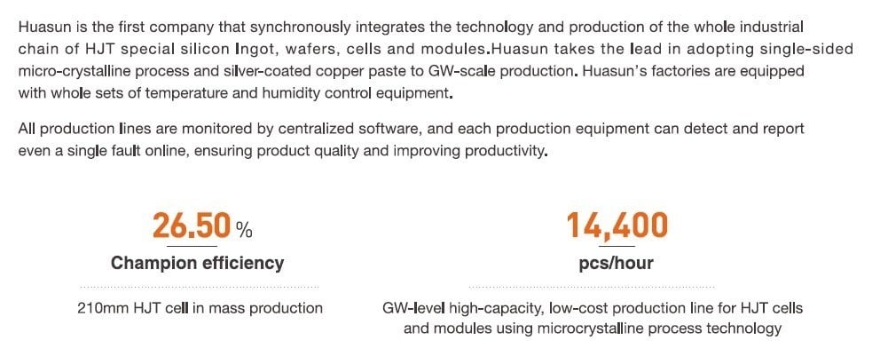 安徽华晟新能源科技股份有限公司(简称“华晟”)成立于2020年7月,是一家专注于超高效N型硅基异质结(HJT)太阳能拉晶、硅片、电池、组件技术开发应用与产品规模化生产的科技创新型企业。