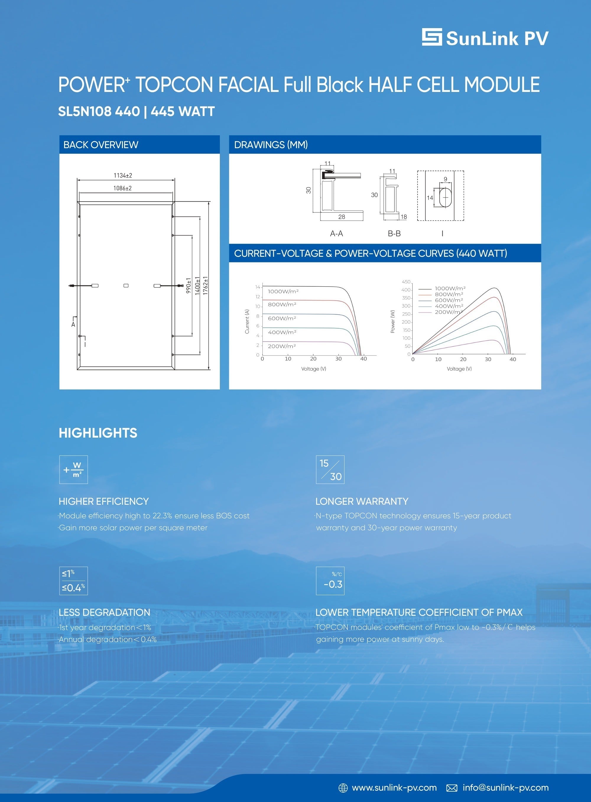 These include N-Type Bifacial TOPCon modules, N-Type IBC modules, and PERC modules, all of which underscore Sunlink PV's commitment to delivering advanced and efficient solar solutions.