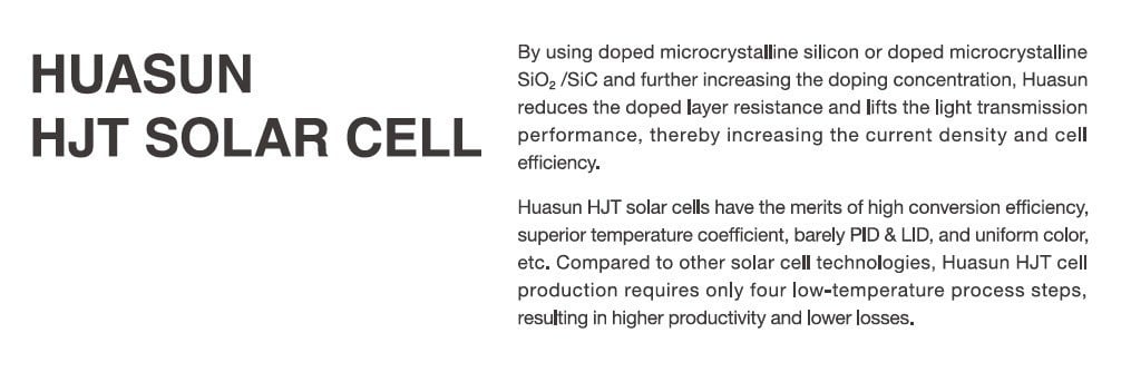 Design, manufacturing and sales of photovoltaic heterojunction cells and modules |