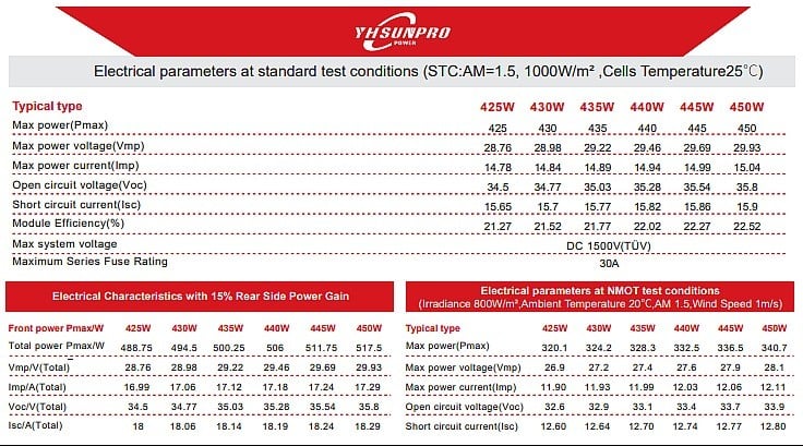 | 功率输出保证 | 89.4 % 25年年限质保,87.4 % 30年年限质保 | ||