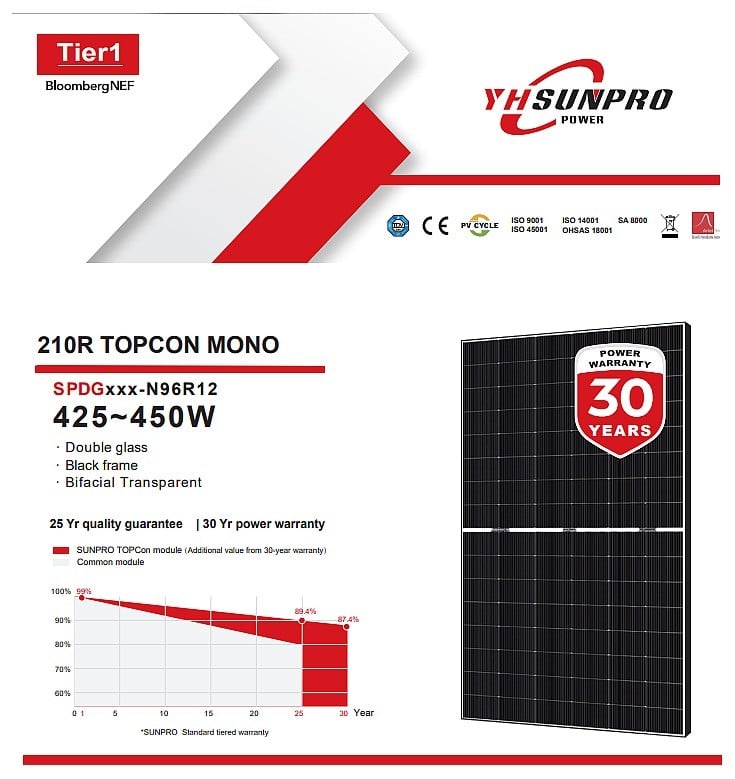 2024年,SUNPRO凭借领先的TOPCon,PERC,HJT组件生产技术,严格的多道质检工艺,连续三年稳居彭博社新能源BNEF(TIER1)全球组件制造商榜单。同年并在杭州设立营销办事处。