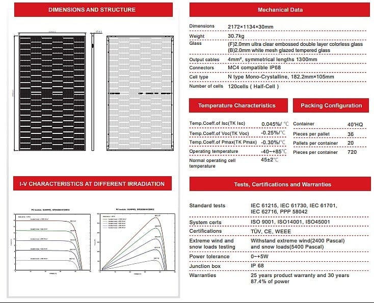 | 组件尺寸(高/宽/厚) | 2172x1134x30 mm | ||||