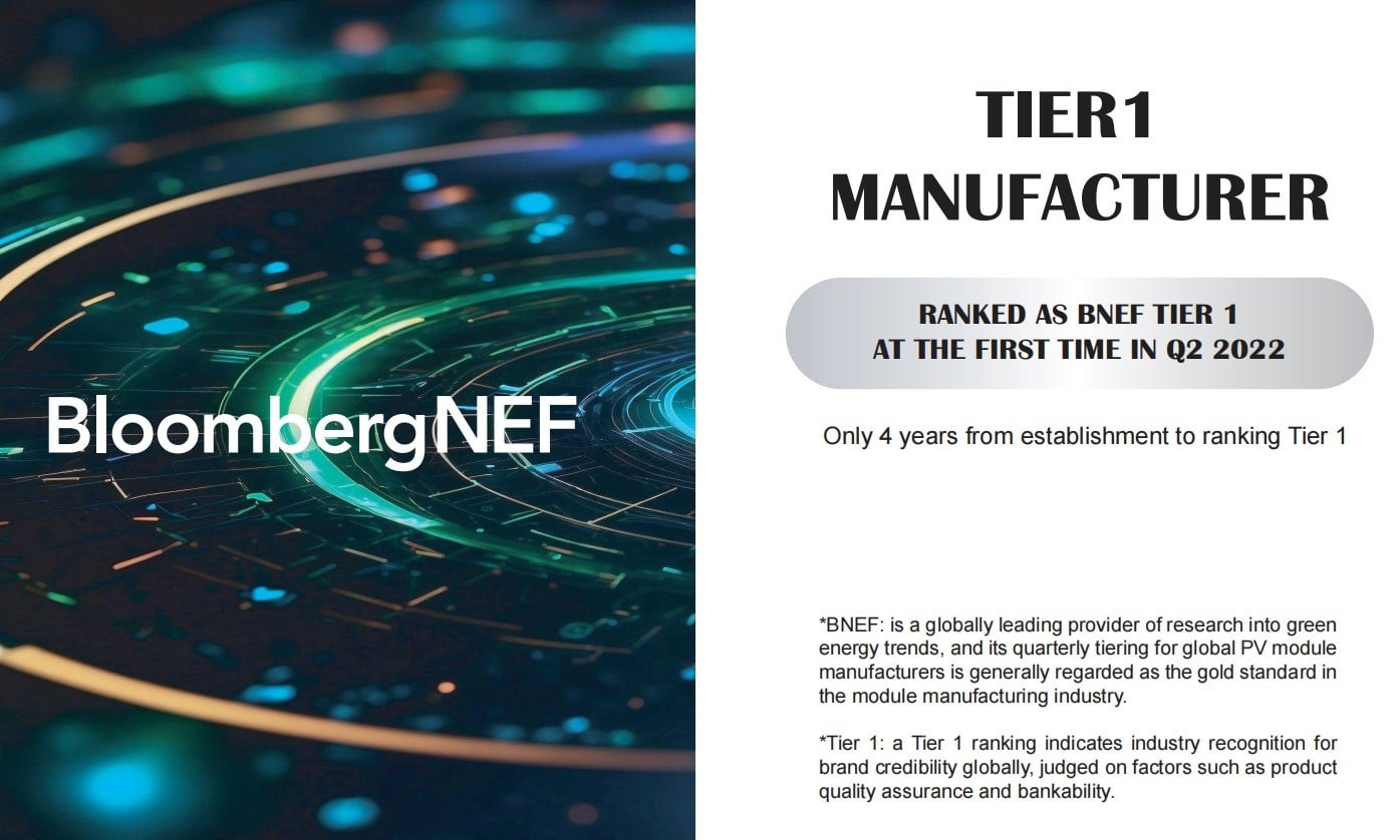 2022年,成功进入彭博社新能源财经 Tier 1 名单