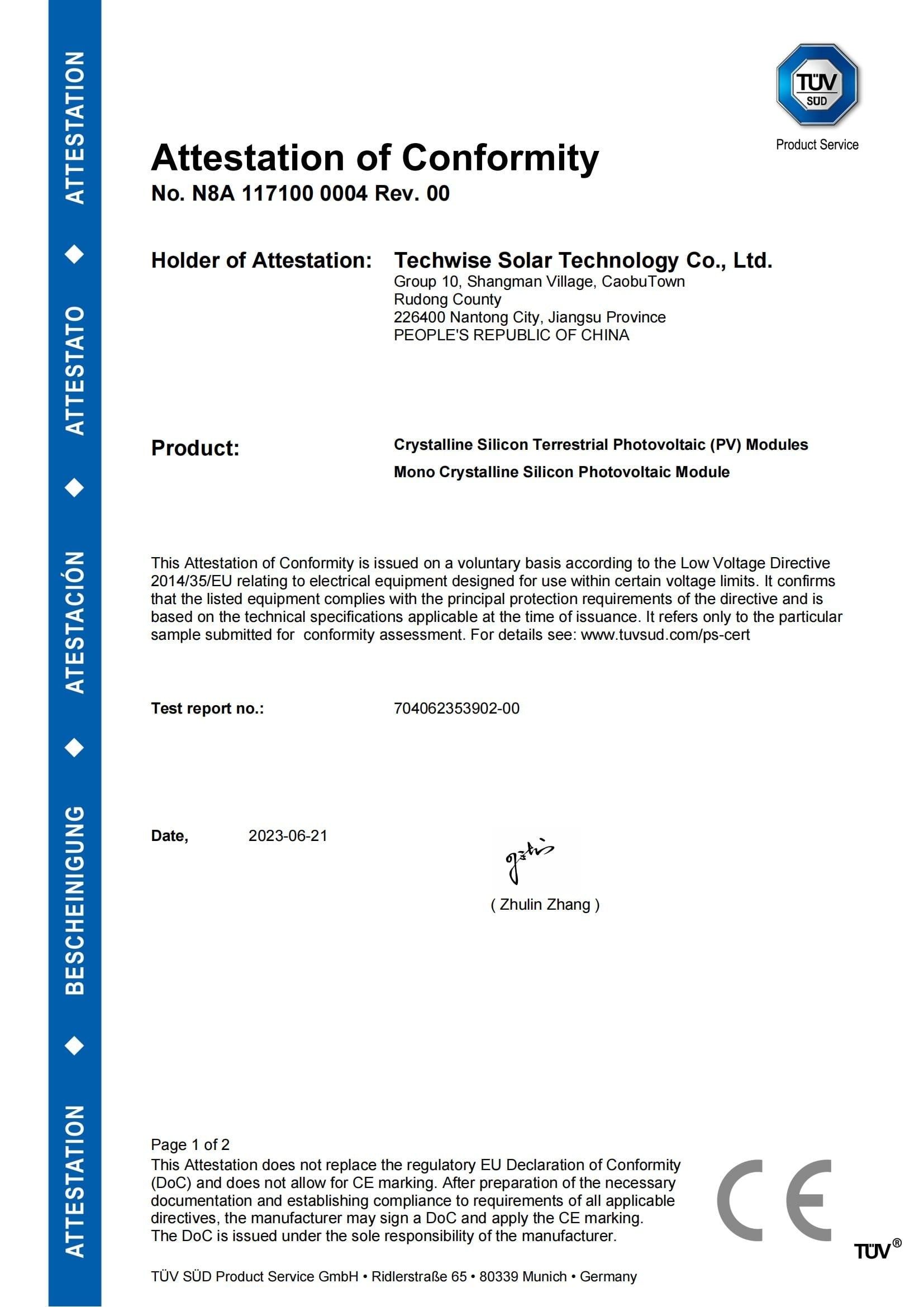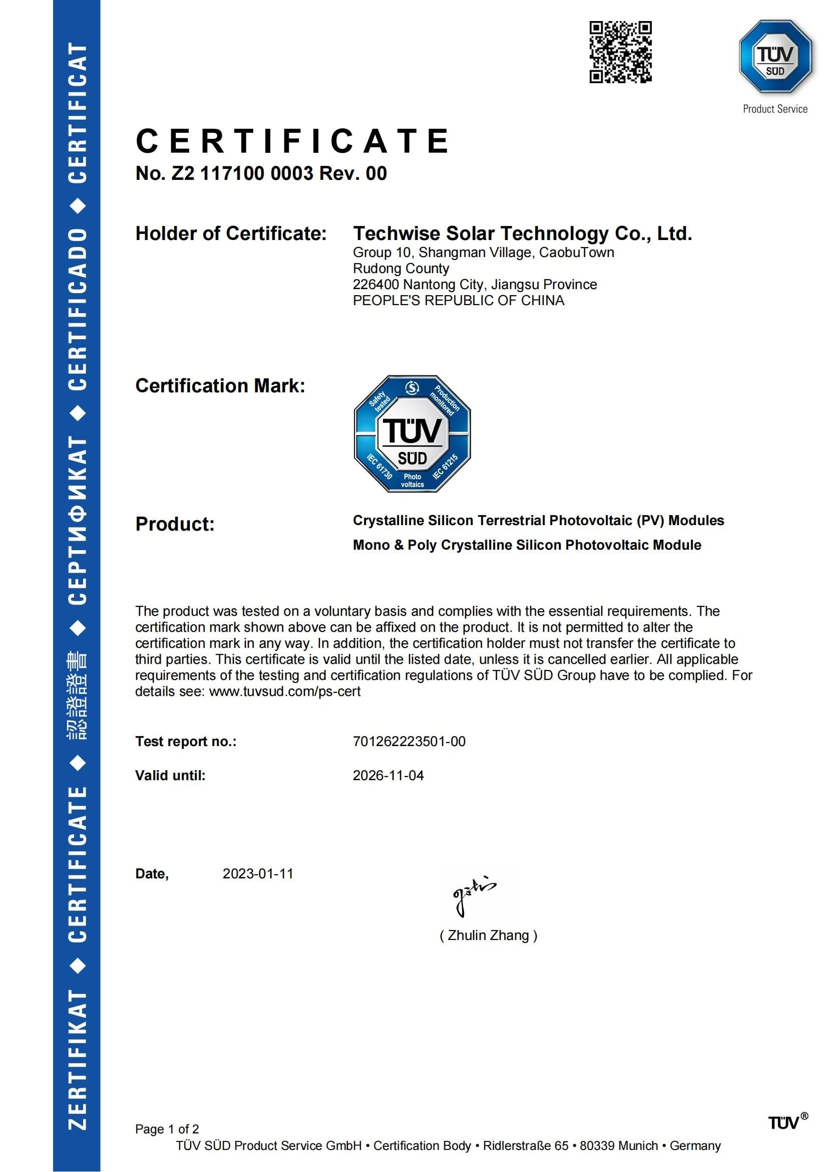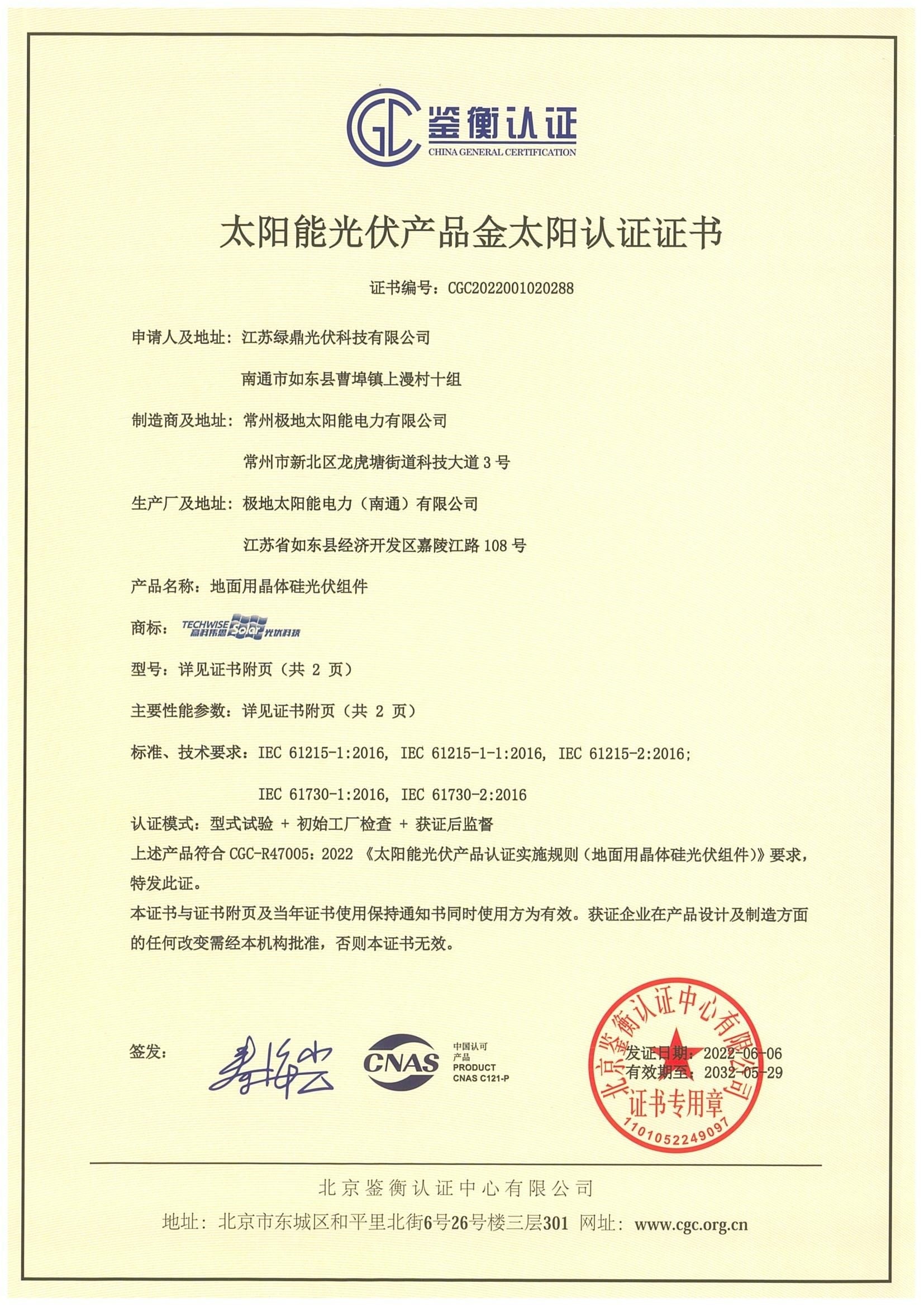 TUV, CE, CGC, ISO证书