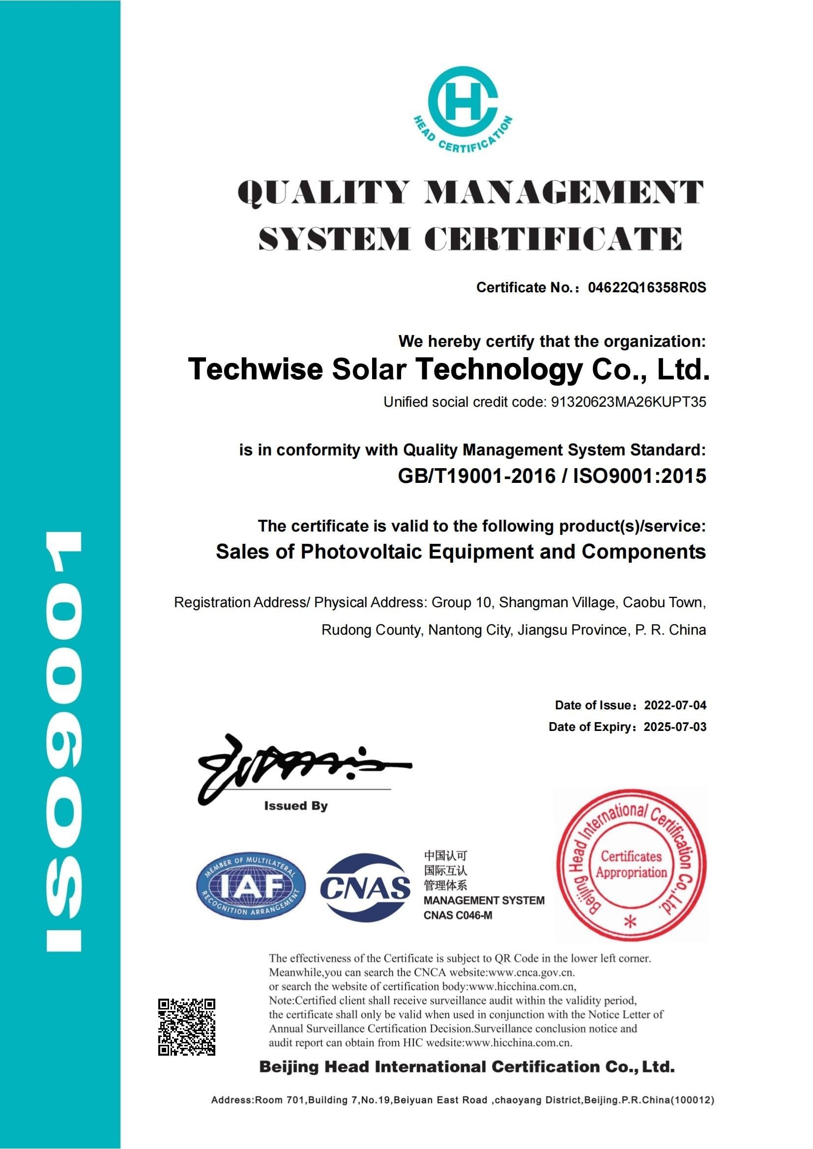 Quality Assurance, Constant Innovation, and Professional Service have always been our top three core values at Techwise Solar. From day one, we have embraced and integrated these values into the very fabric of our company.