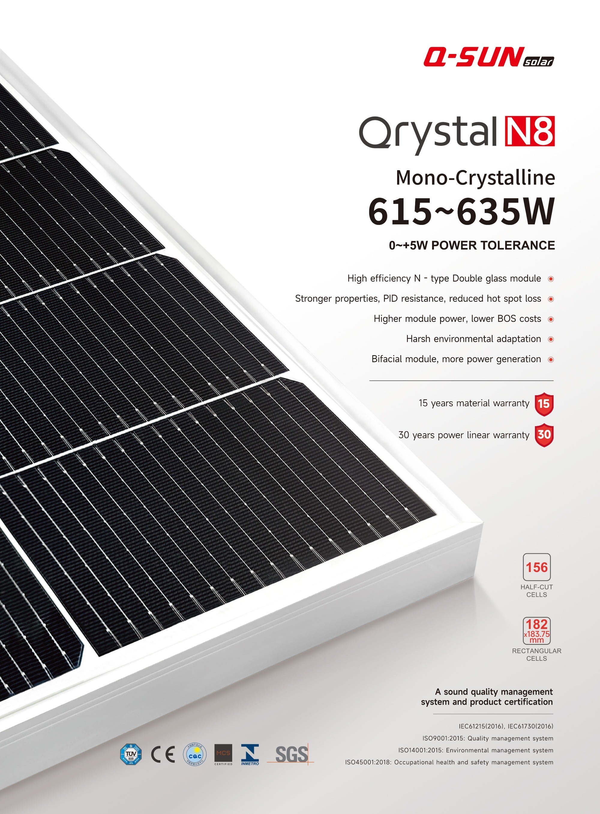 Q-SUN集团是领先的清洁能源综合解决方案提供商,专注于光伏组件的研发、生产和销售。我们在光伏行业的智能生产和制造方面处于领先地位。我们的国际营销中心成立于2014年,位于南京,并在天长、盐城、阿曼和保加利亚设有生产基地。Q-SUN集团在光伏组件研发和生产方面拥有十多年的专业知识,每年为全球50多个国家和地区的近百万用户提供超过8GW的高效光伏组件,为我们的全球客户持续创造电力和经济效益。