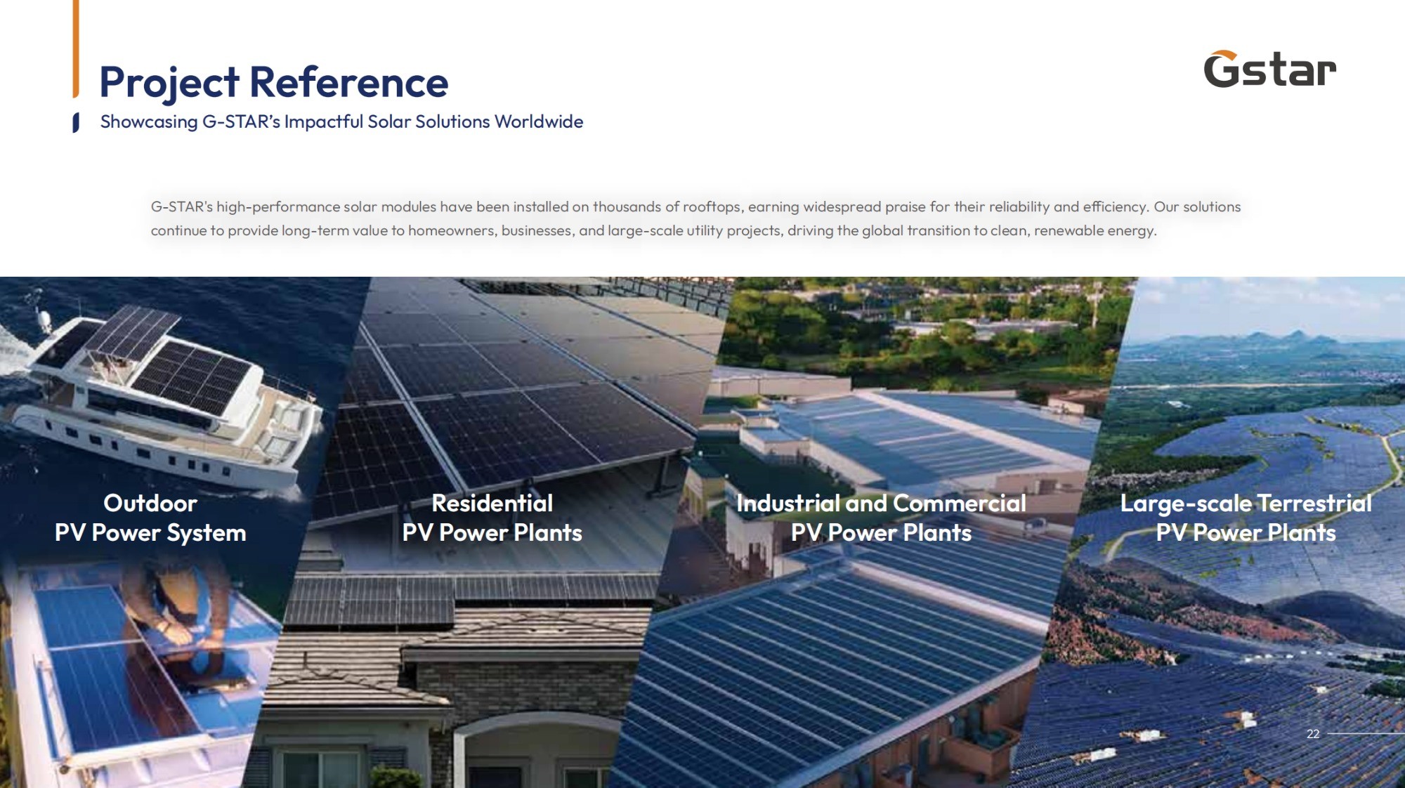 By integrating the PV supply chain to shape an integrated solar future, G-STAR is dedicated to pioneering a sustainable energy landscape that harnesses the full potential of solar power, fostering a brighter, cleaner, and more interconnected world.