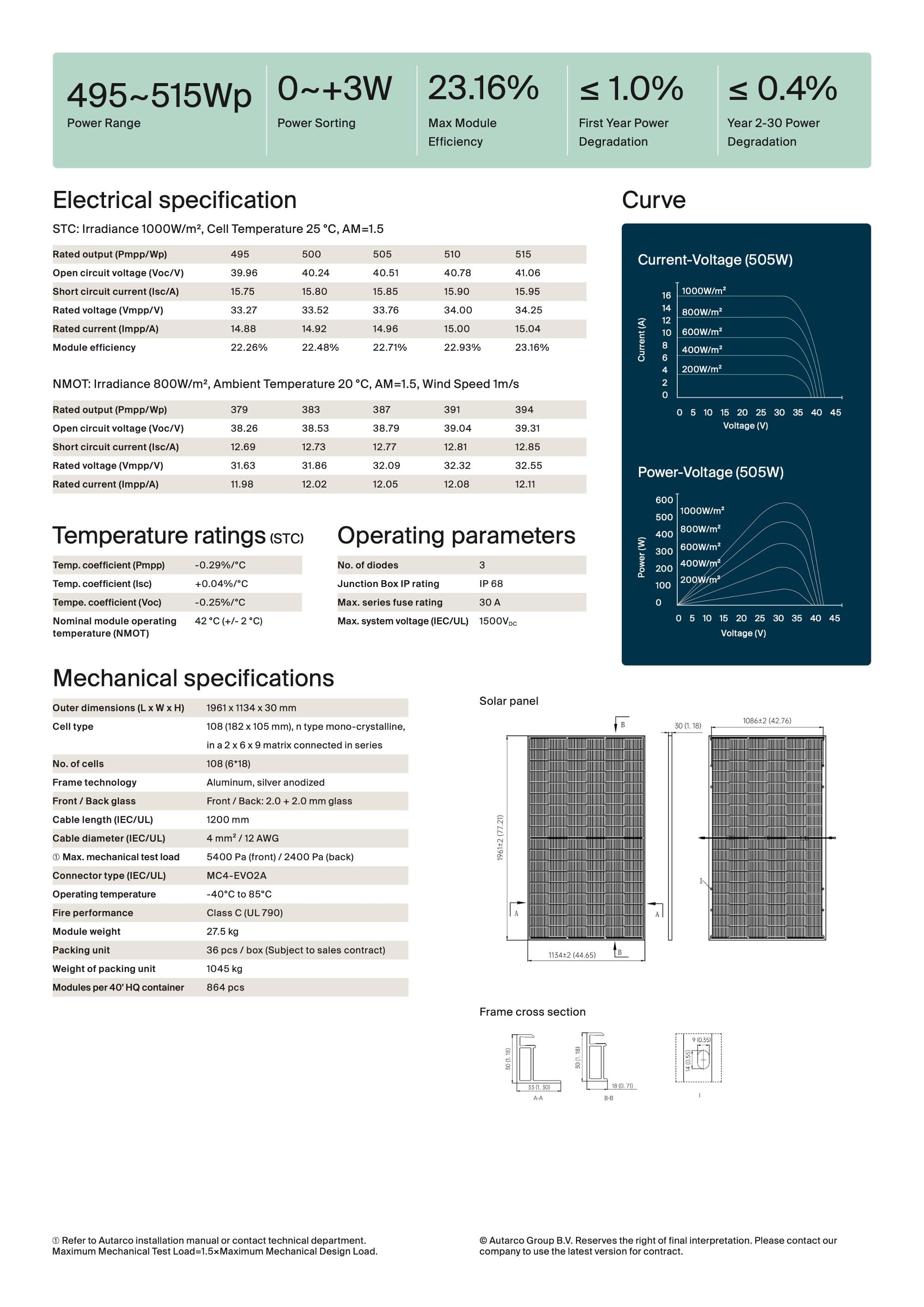 Autarco offers a complete range of Tier 1 quality solar panels. Our extensive quality control and in-house testing facilities guarantee that Autarco panels meet the highest quality standards. That is why we offer premium warranties, including our industry-unique insured kWh guarantee.