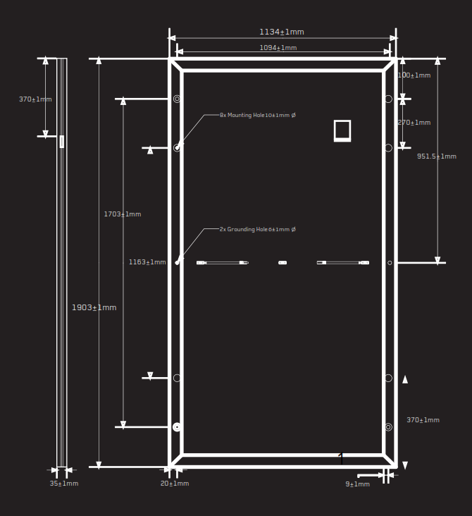| 组件尺寸(高/宽/厚) | 1903x1134x35 mm | |||||