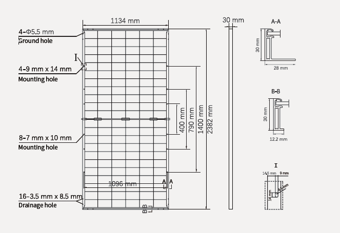 | 组件尺寸(高/宽/厚) | 2382x1134x30 mm | |||||