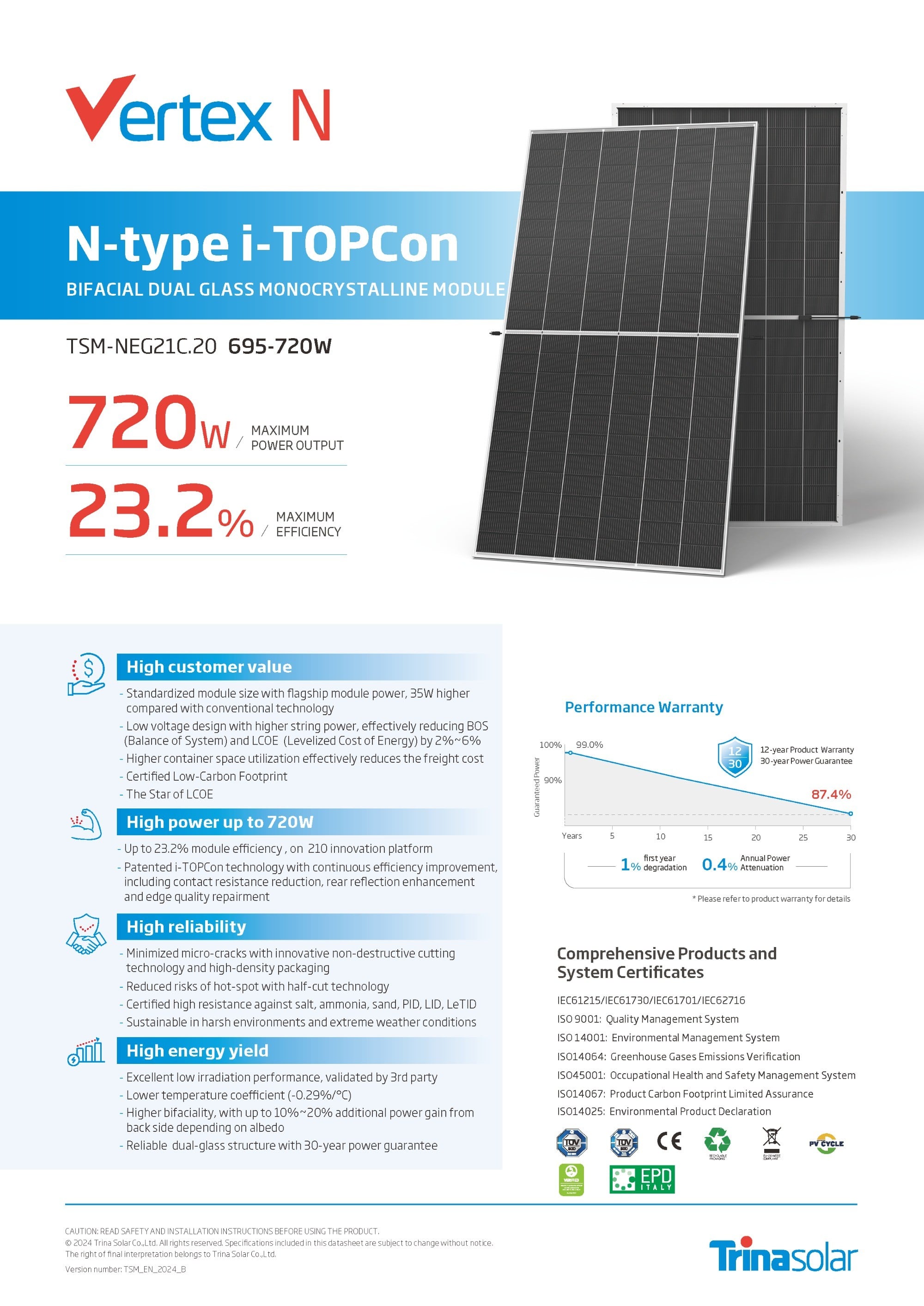 | 功率输出保证 | 87.4 % 30年年限质保 | |||||
