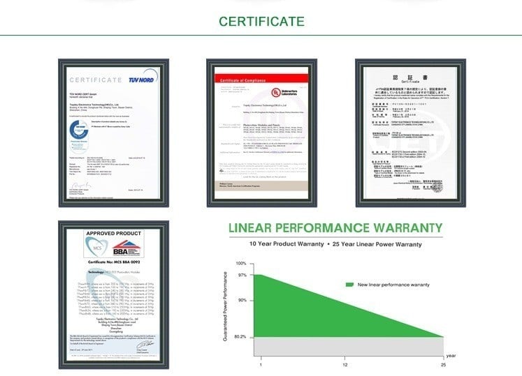 | 温度系数(Voc) | -0.24 %/°C | |||||