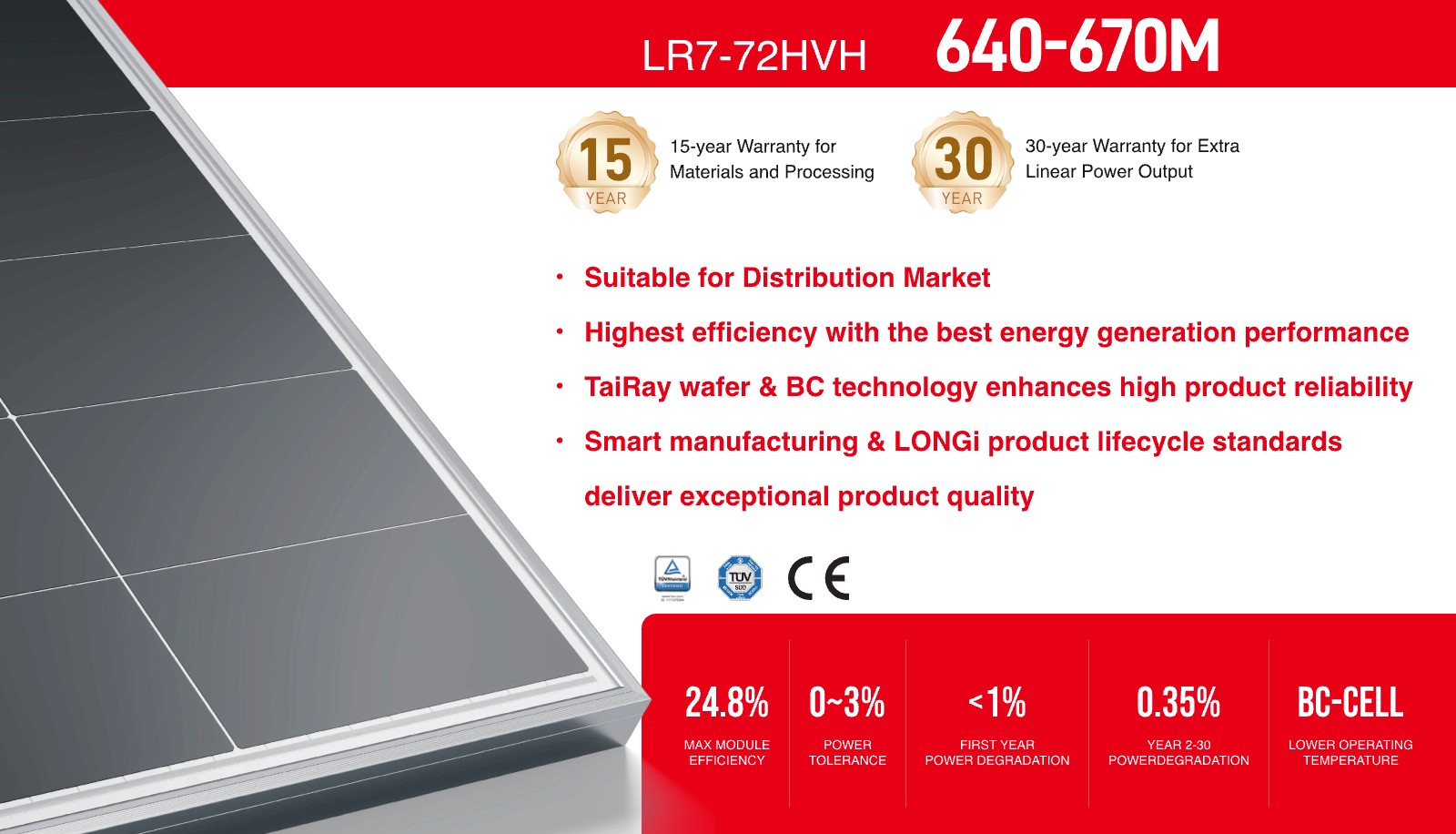 With an optimised size and weight, the LR7-72HTH series helps reduce transportation and BOS costs, while its gridline-free front surface improves light absorption and delivers a clean, premium appearance. Backed by a 12-year product warranty and 25-year linear power warranty, this module is a dependable choice for distributors seeking performance, quality, and long-term value.