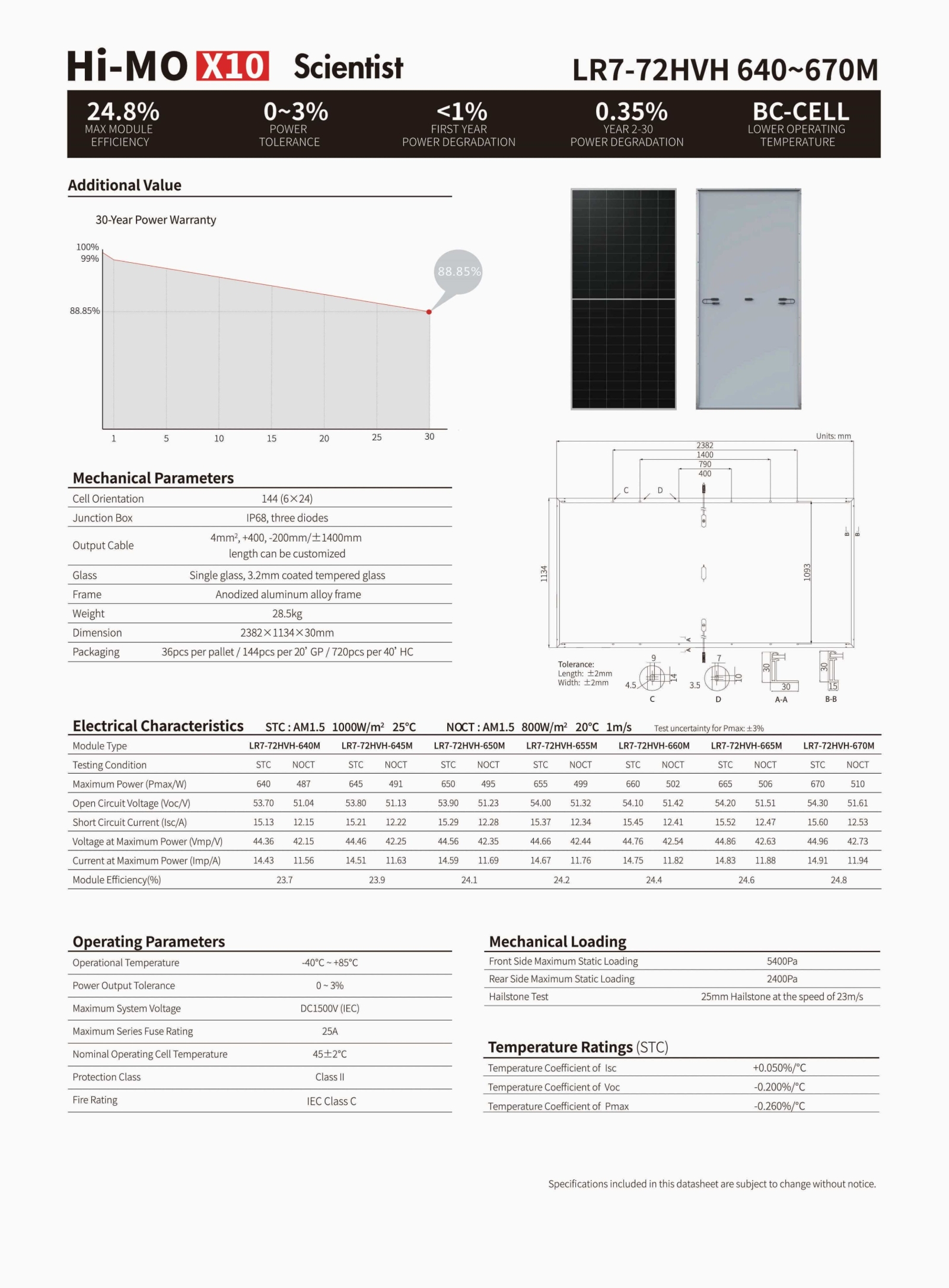 | 温度系数(Voc) | -0.20 %/°C | |||||||