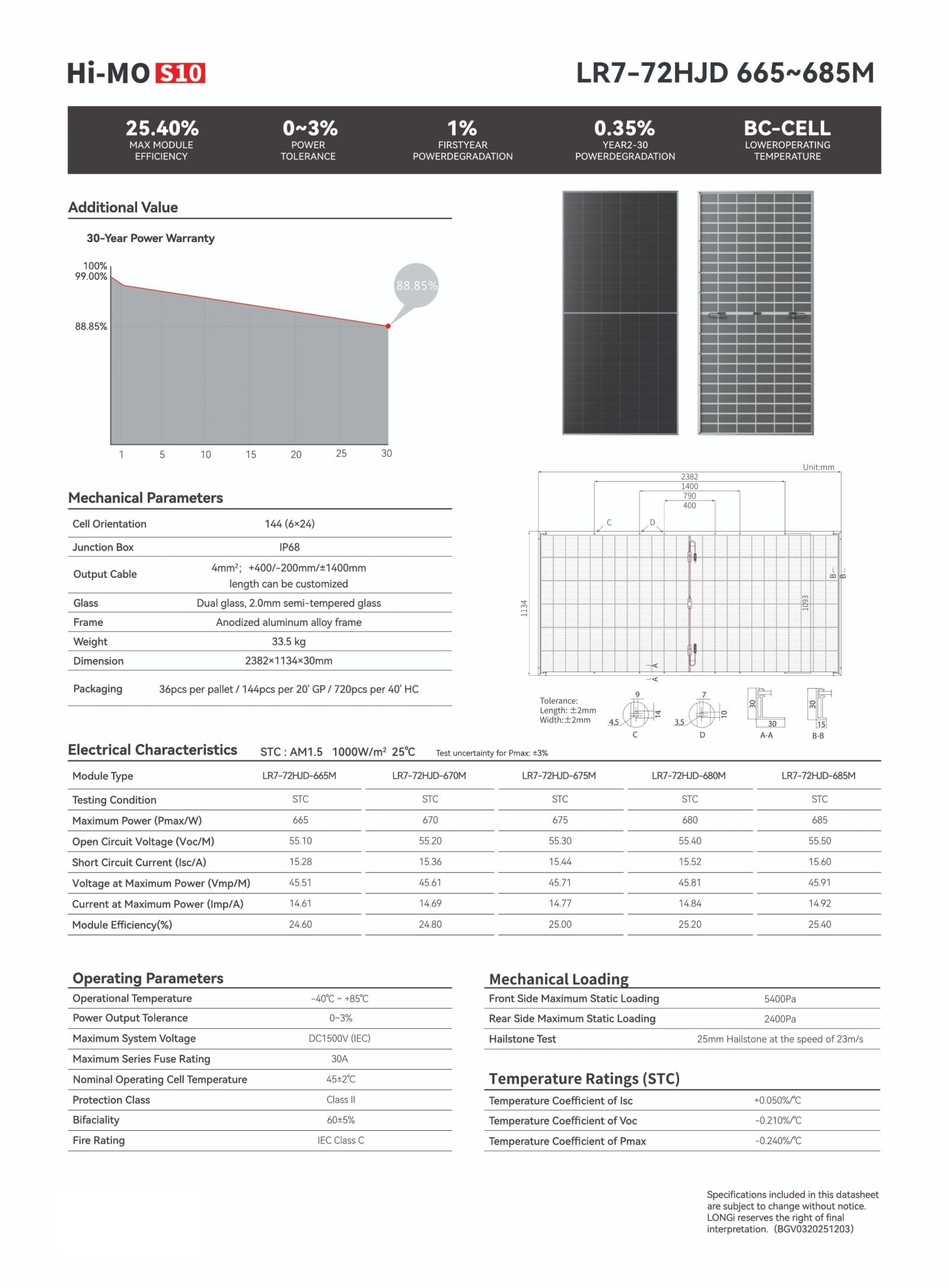 | 组件尺寸(高/宽/厚) | 2382x1134x30 mm | |||||