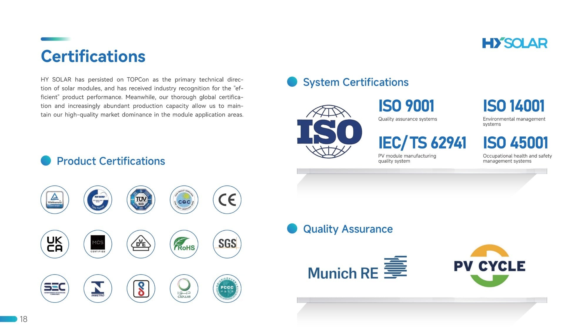 I highly recommend HY Solar and their exceptional range of photovoltaic (PV) panel products. With a commitment to cutting-edge technology and sustainable energy solutions, HY Solar stands out as a reliable provider in the solar industry. Their PV panels boast impressive efficiency rates and durability, ensuring optimal performance and longevity. Moreover, HY Solar's dedication to innovation results in panels that are not only efficient but also aesthetically pleasing, making them an excellent choice for both residential and commercial installations. Whether you're looking to reduce your carbon footprint or invest in renewable energy, HY Solar's PV panels offer a dependable solution backed by years of expertise and customer satisfaction.