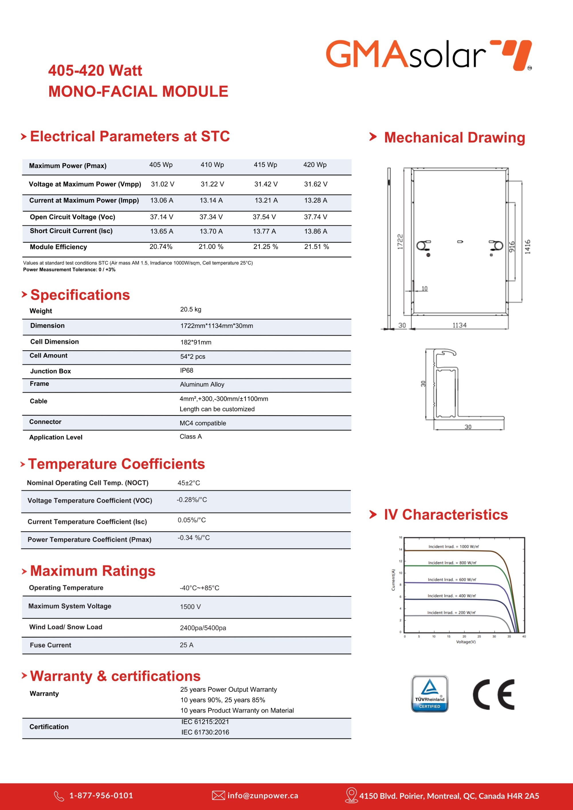 Zun Power is a leading solar panel manufacturer based in Montreal. We specialize in high-efficiency photovoltaic panels under our own brand, GMA Solar, designed to meet the needs of commercial, industrial, agricultural, and institutional projects.