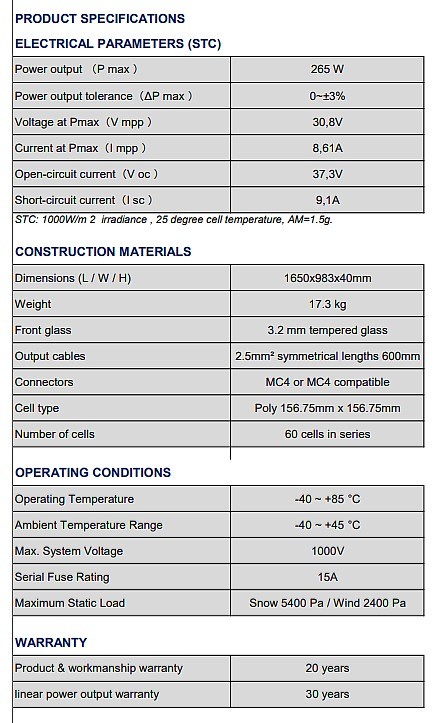We offer mono- and polycrystalline, framed or unframed, full-black modules, custom sizes, IEC-certified or according to IEC standards, 10-year warranty, 80% output over 25 years. Min. 60 panels approx.