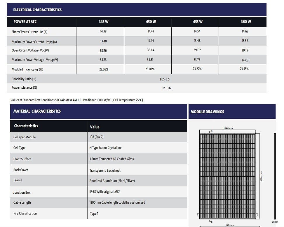 Philadelphia Solar specializes in the production of monocrystalline Mono-facial and bifacial solar modules. PHENEX modules are built using the advanced M10 wafer and monocrystalline PERC cell technology. These modules feature 144 cells and are designed with bifacial technology, which allows for an additional 7-25% power output on the power output of 550W that is produced from the front side. This cutting-edge technology ensures increased efficiency and energy production. Recently, the company has introduced its newest products, Black IRIS and Dark PHENEX, which are designed for rooftop use and feature lightweight black modules. Philadelphia solar is up to date with the evolving market technology and willing to adopt the latest technology always such as N-type Products.