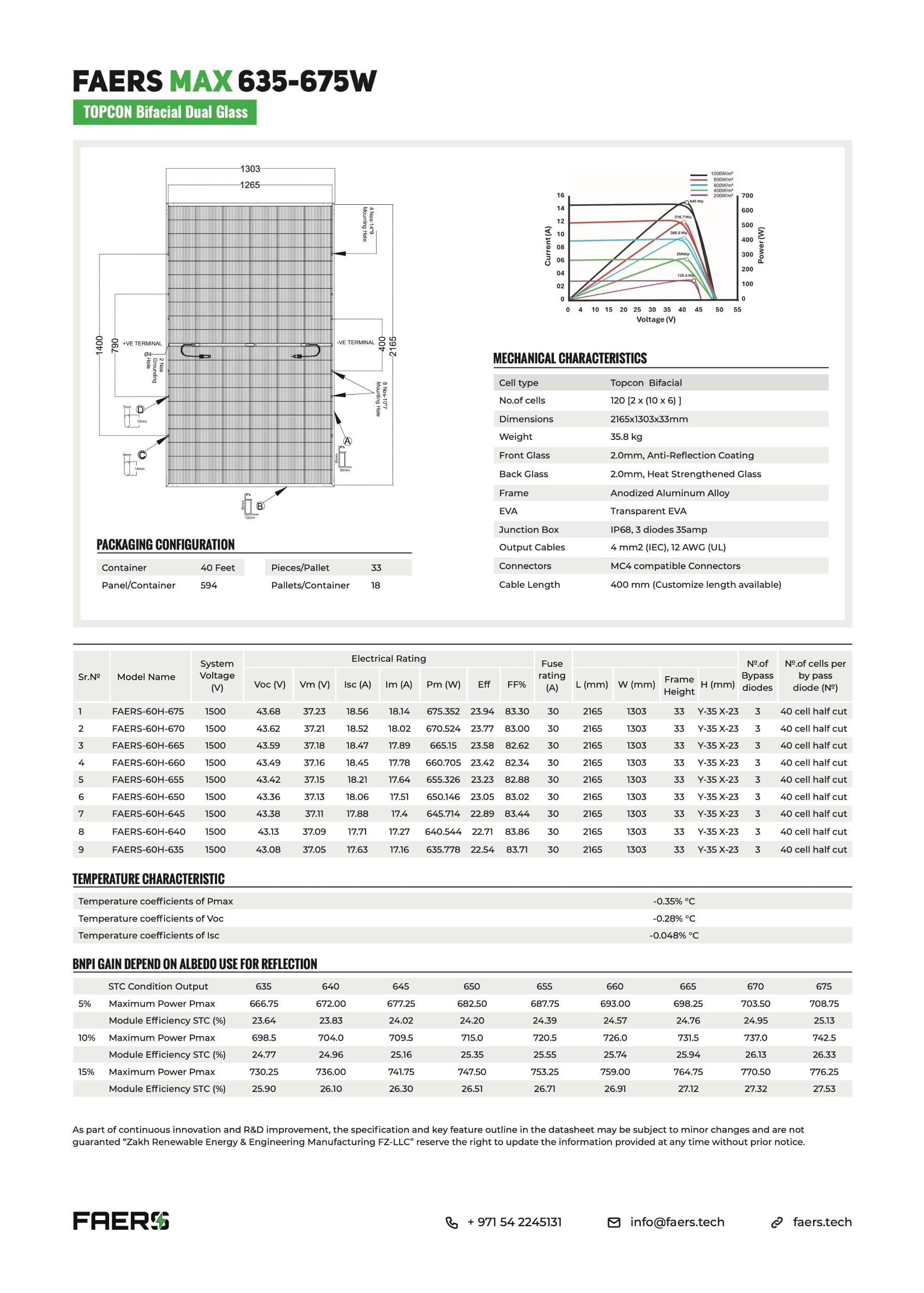 | 温度系数(Voc) | -0.28 %/°C | |||||||||