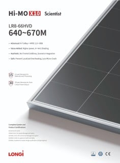 Designed for demanding environments, Hi-MO X10 offers lower operating temperature and enhanced stability, making it particularly suitable for industrial and commercial rooftop systems and high-temperature regions. Backed by a 15-year product warranty and a 30-year linear power output warranty, it ensures long-term reliability and consistent performance across its entire lifecycle.