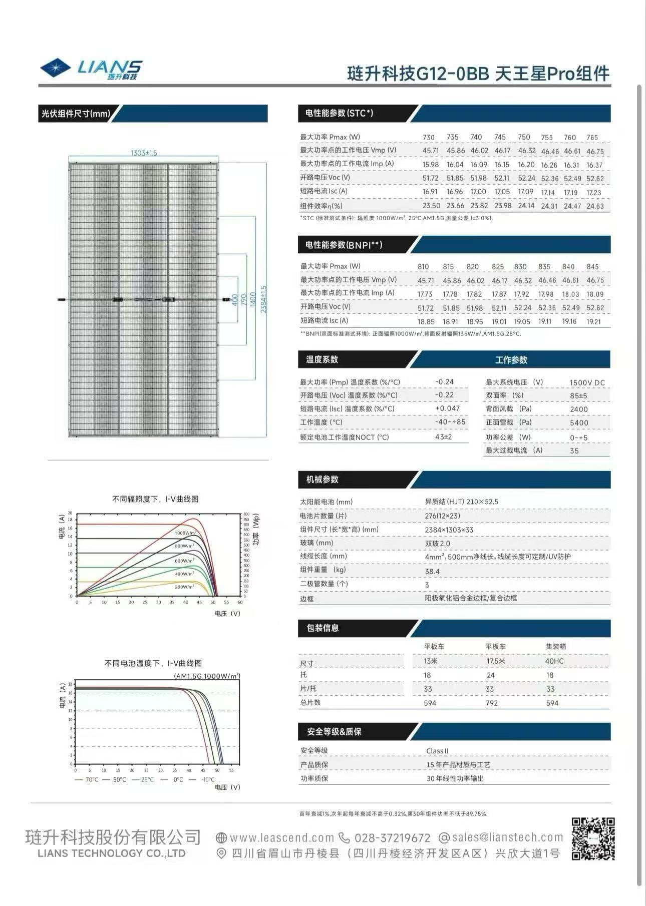 | 电性能参数(STC) | ||
