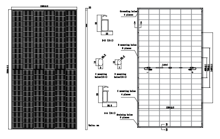 | 组件尺寸(高/宽/厚) | 2384x1303x33 mm | |||||