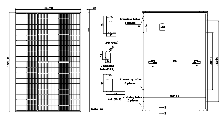| 组件尺寸(高/宽/厚) | 1722x1134x30 mm | |||