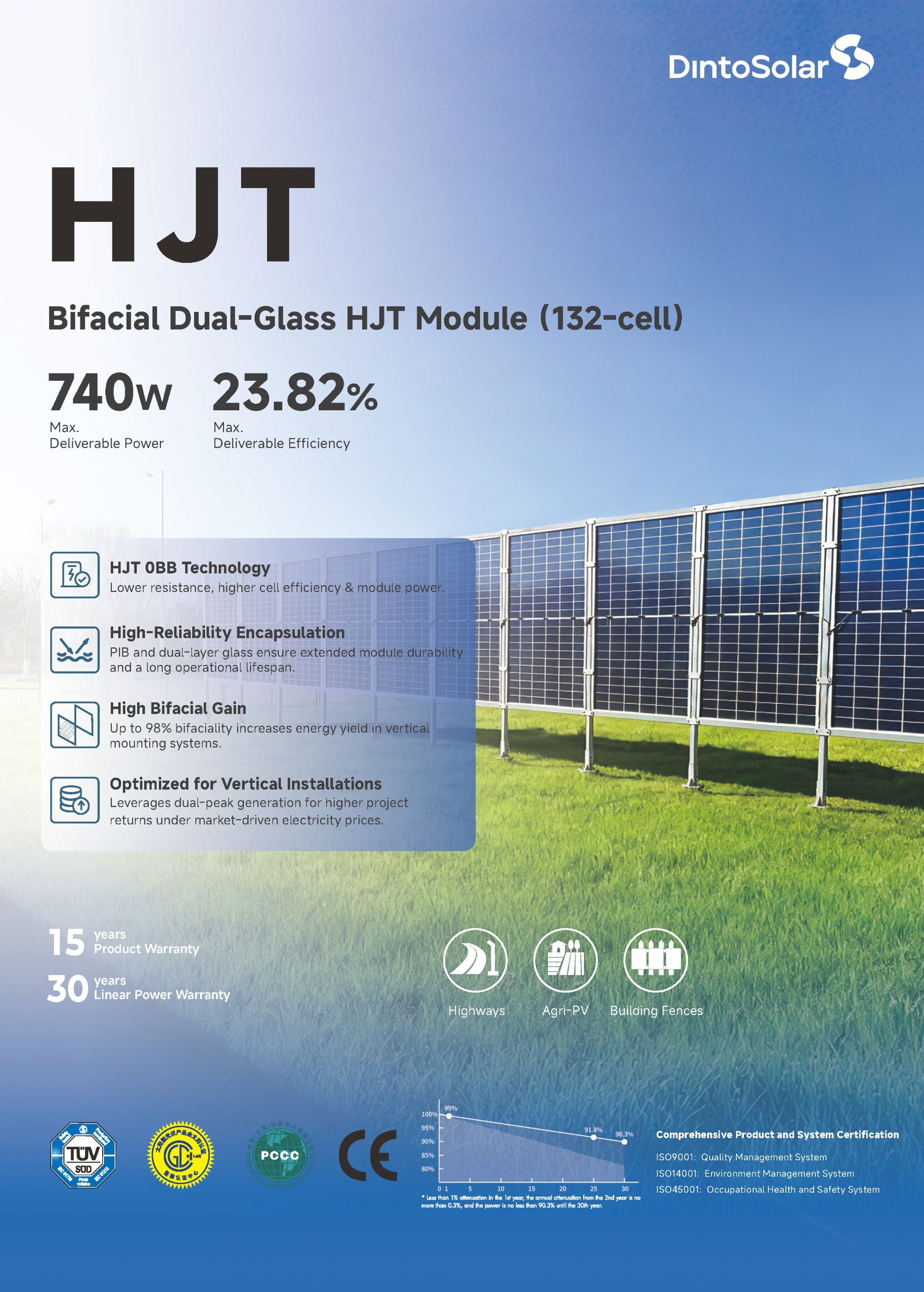 | 功率输出保证 | 99 % 1年年限质保,90.3 % 30年年限质保 | |||||||