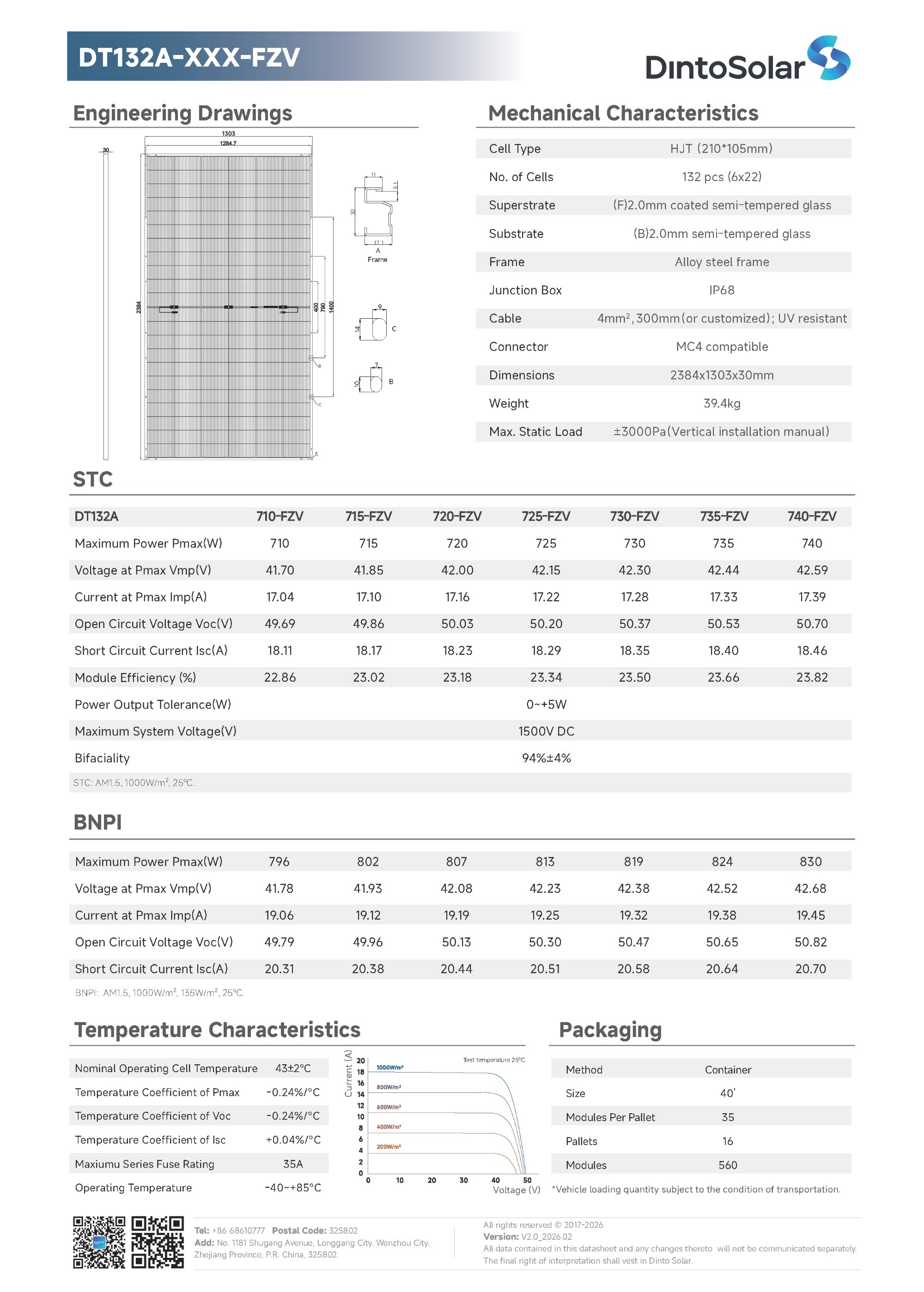 | 温度系数(Voc) | -0.24 %/°C | |||||||