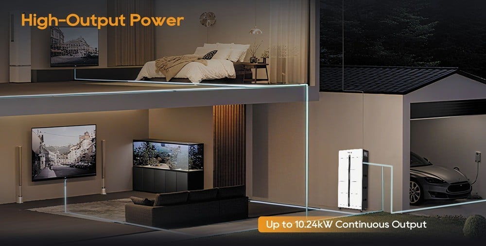Powerful: Scalable to 245.76 kWh (6 modules per stack,max 8 stacks in parallel),up to 10.24kW output power