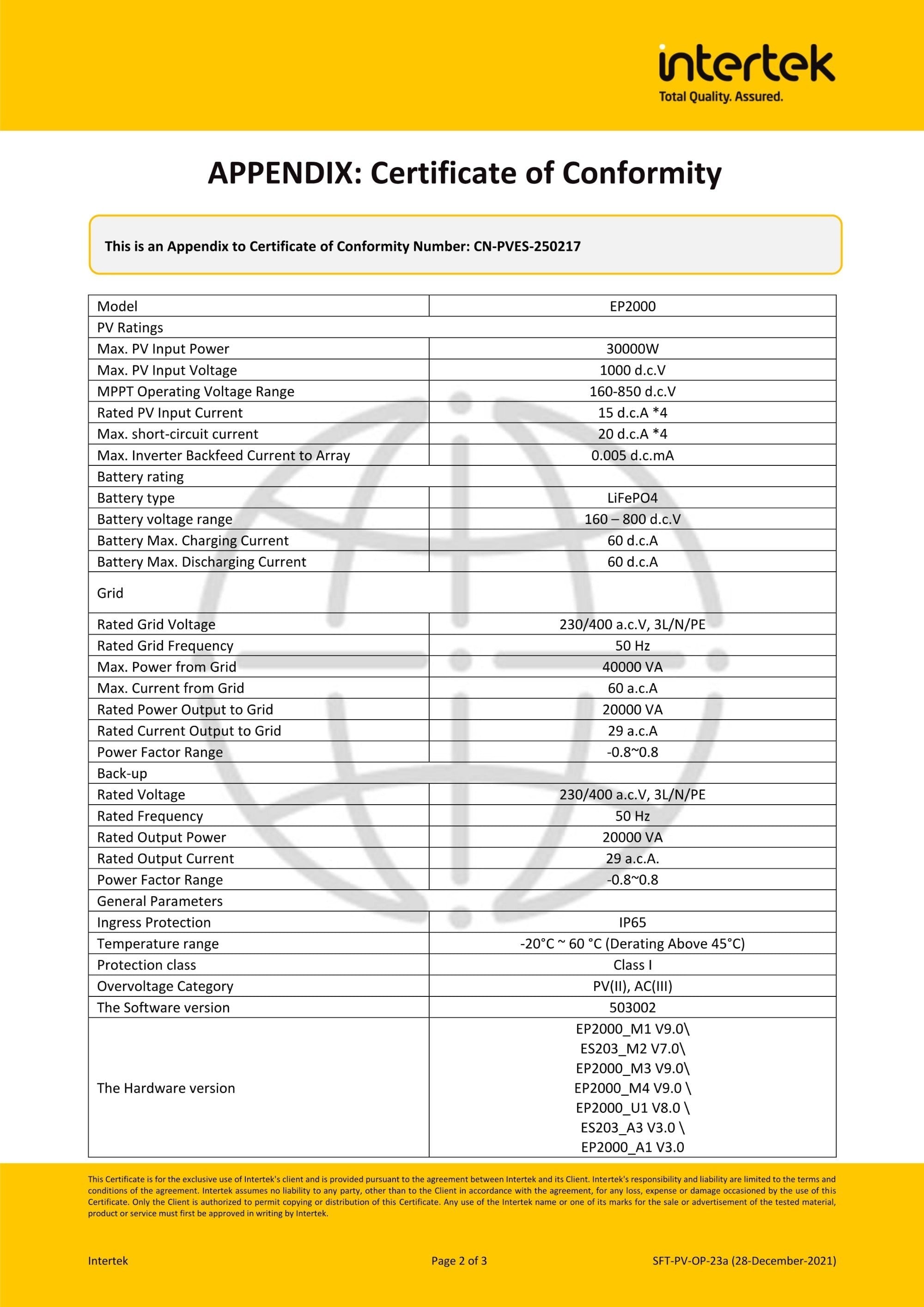 | 产品质量保证 (最低) | 5 年 | |