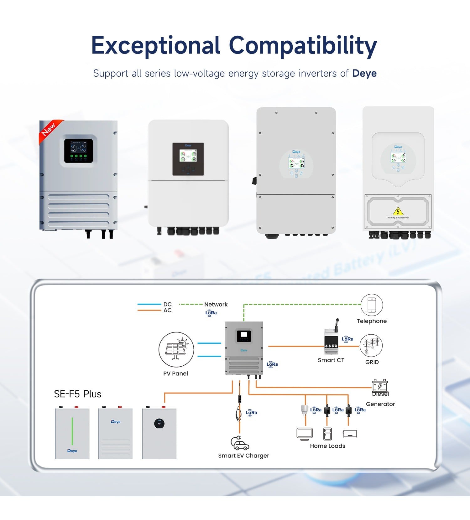 We use Deye Inverters and Batteries for all our low-voltage solutions for both residential and commercial projects.
