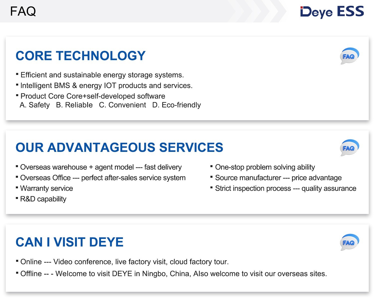 We use Deye Inverters and Batteries for all our low-voltage solutions for both residential and commercial projects.