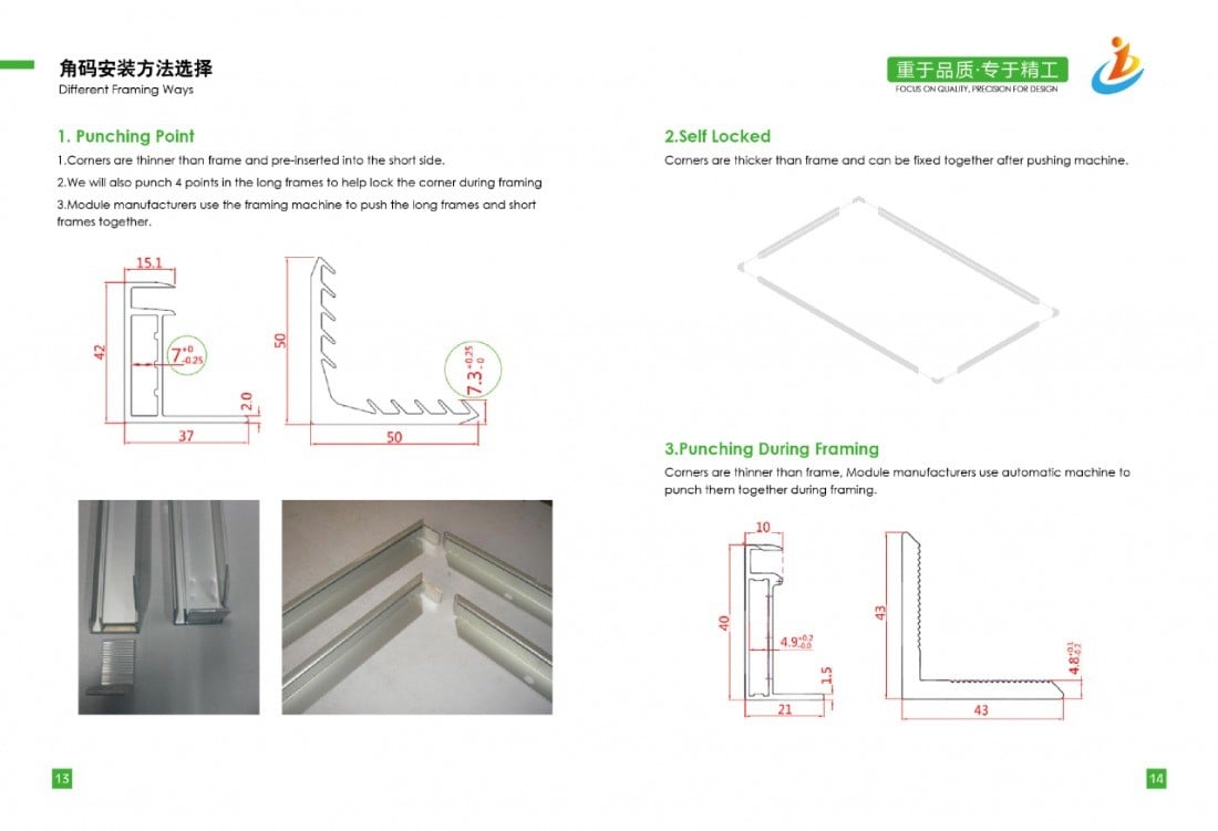 Our company specializes in R&D, production and sales of solar module frame and solar power mounting system. Our products win praise from customers and enjoy a good reputation in the market owing to attractive appearance, reliable quality, complete specification and superior performance.